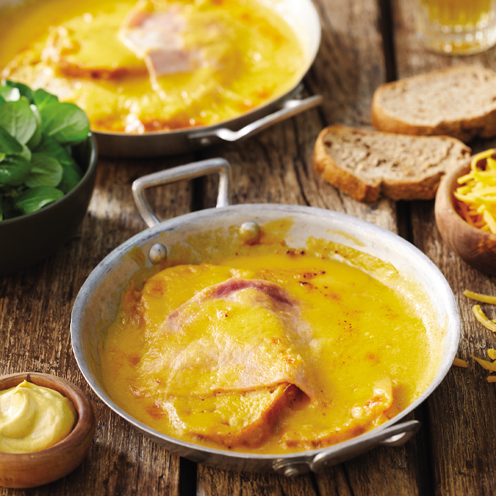 Cheddar 27% (LAIT de vache pasteurisé, sel, coagulant microbien, fermentslactiques (dont LAIT), colorant : E160b (ii), antiagglomérant : amidon depomme de terre), bière 18%, pain 18% (Farine de BLE, eau, mélange degraines (11,3% : lin, millet, SESAME et tournesol), farine ceréales et graines(7.6% : farine de BLE, farine de SEIGLE, farine complète d'AVOINE, farine demaïs, farine d'ORGE, semoule de BLE, graines de lin brun, graines de millet),sel, levure), jambon 10% (jambon de porc (UE) 81%, eau, sel, sirop de glucose,stabilisants : E451, E450, arômes naturels, antioxydant : E316, conservateur :E250), eau, MOUTARDE (eau, graines de MOUTARDE, vinaigre, sel, acidifiant:acide citrique, conservateur: E224 (SULFITES)), amidon modifié de manioc,huile de tournesol, sel, épaississant : gomme de xanthane.